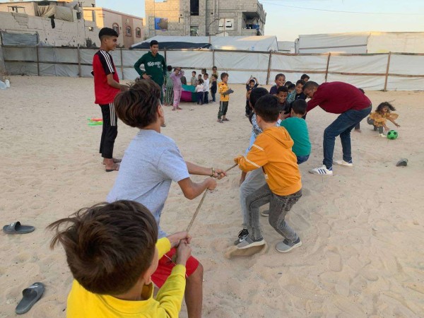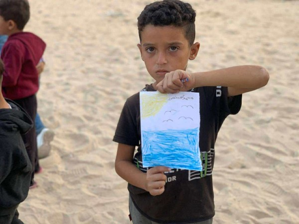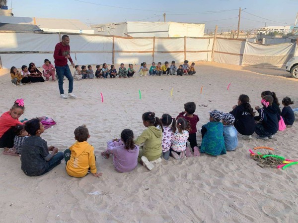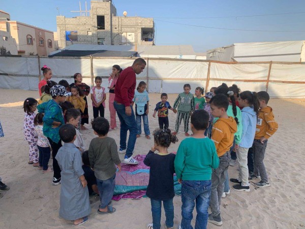 ご報告が遅れましたが、こちらは10月に行われたガザのハーンユニスのキャンプで行われた、子どもたち50人への教育活動支援の様子です。